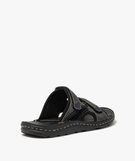 Mules homme dessus en cuir à larges brides à scratch noir