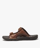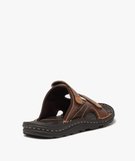 Mules homme dessus en cuir à larges brides à scratch marron chine