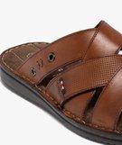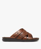 Mules homme unies en cuir avec multibrides croisées marron chine