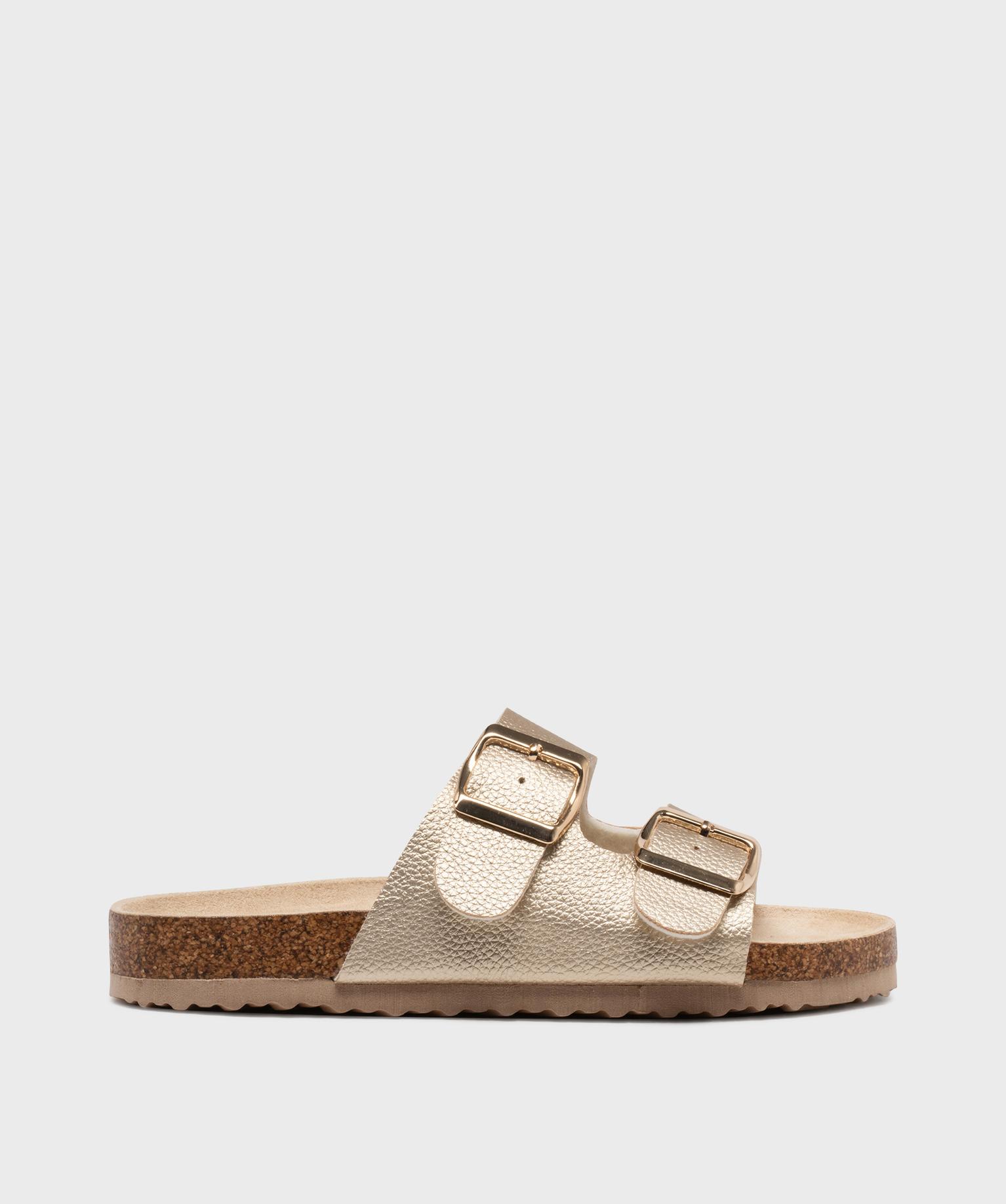Mules ouvertes 2 brides en matière métallisée fille - Lovely Wings dore