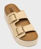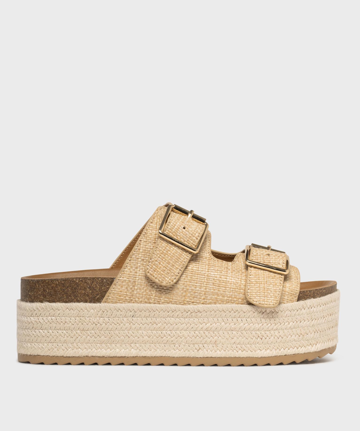 Mules plateforme 2 brides en textile effet raphia femme - 5 Miles beige