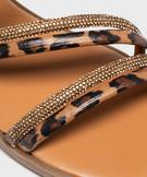 Apportez une touche de style audacieuse à vos tenues estivales avec ces sandales plates pour femme. Des mules multibrides super tendance : elles mélangent brides à imprimé léopard et brides ornées de strass pour un contraste chic et original. Le bout ouvert sur une semelle carrée est à la fois intemporel et très actuel. Plats, avec une semelle intérieure confortable, ces nu-pieds sont parfaits avec une robe longue bohème comme avec un pantacourt slim !