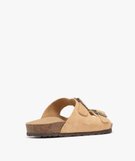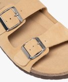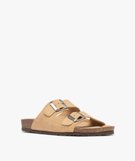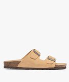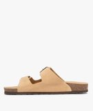 Mules plates à double brides en cuir femme beige