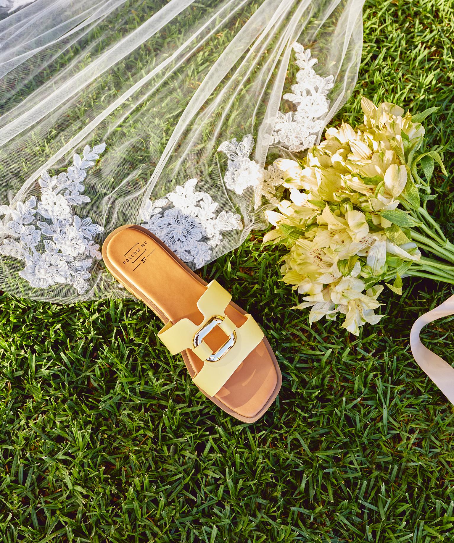 Mules plates avec bijou sur le dessus femme - Follow Me jaune clair