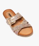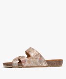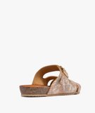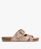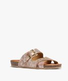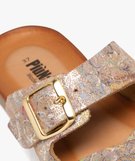 Ces mules pour femme allient élégance et confort. Conçues avec soin, elles possèdent de larges brides en cuir décorées de motifs féminins et sublimées par des touches scintillantes. Leur structure enveloppe parfaitement la forme du pied et offre un excellent maintien tandis que la semelle intérieure cuir intégrant une couche de mousse offre un confort de marche exceptionnel. Des mules en cuir posées sur une semelle aspect liège, ajoutant une note naturelle à l’ensemble. Bride réglable par boucle.