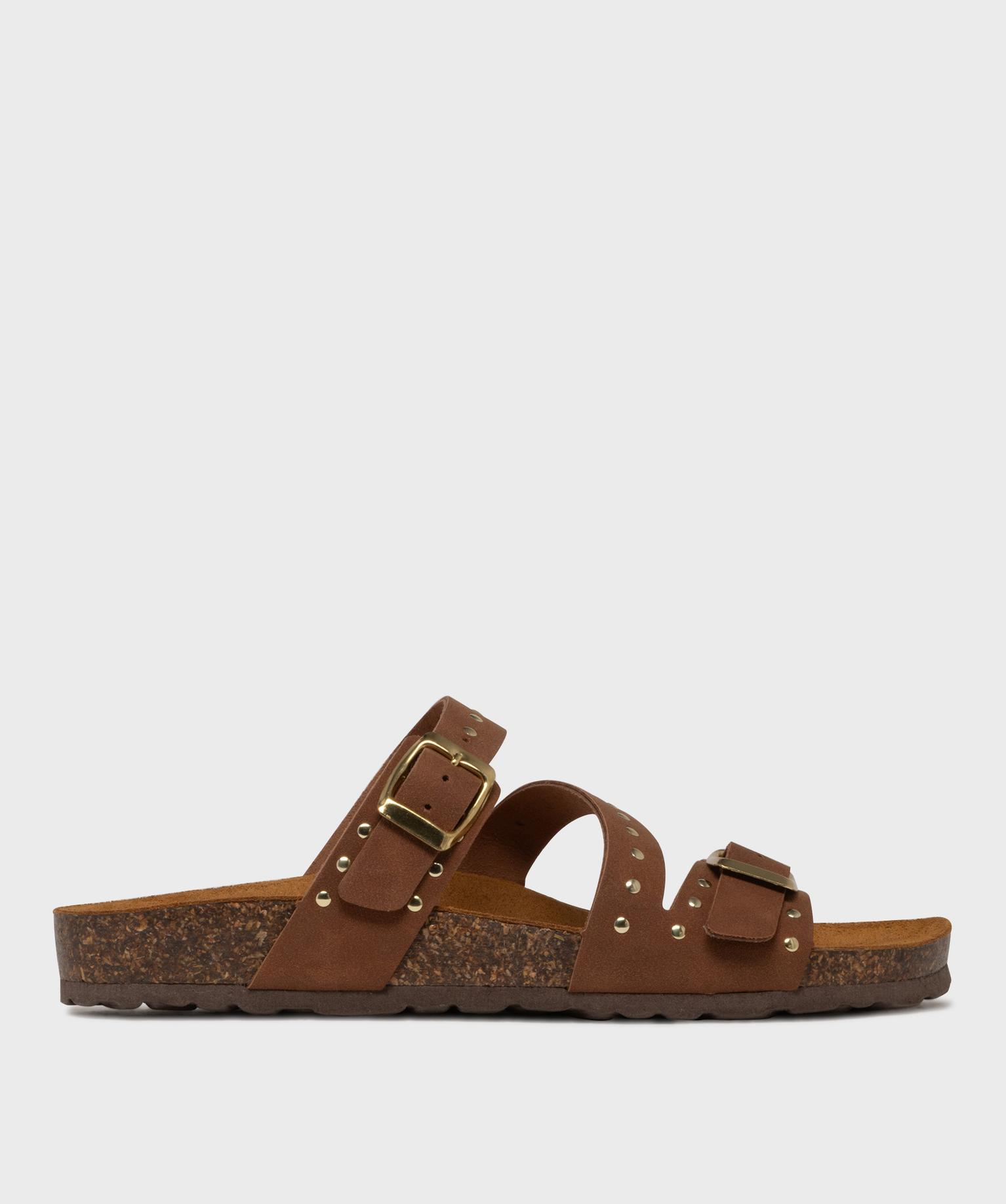 Mules semelle intérieure cuir anatomique à clous femme marron