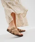 Ces mules femme combinent confort ergonomique et design moderne. Leur semelle intérieure en cuir épouse la forme du pied pour offrir une marche agréable. La tige structure le pied grâce à une bride simple associée à une double bride à découpe graphique, créant un jeu de lignes sobre et sophistiqué. La boucle dorée permet de régler la largeur du chaussant. Féminins et actuels, ces sandales s'enfilent en un clin d'œil et sont faciles à assortir.