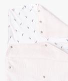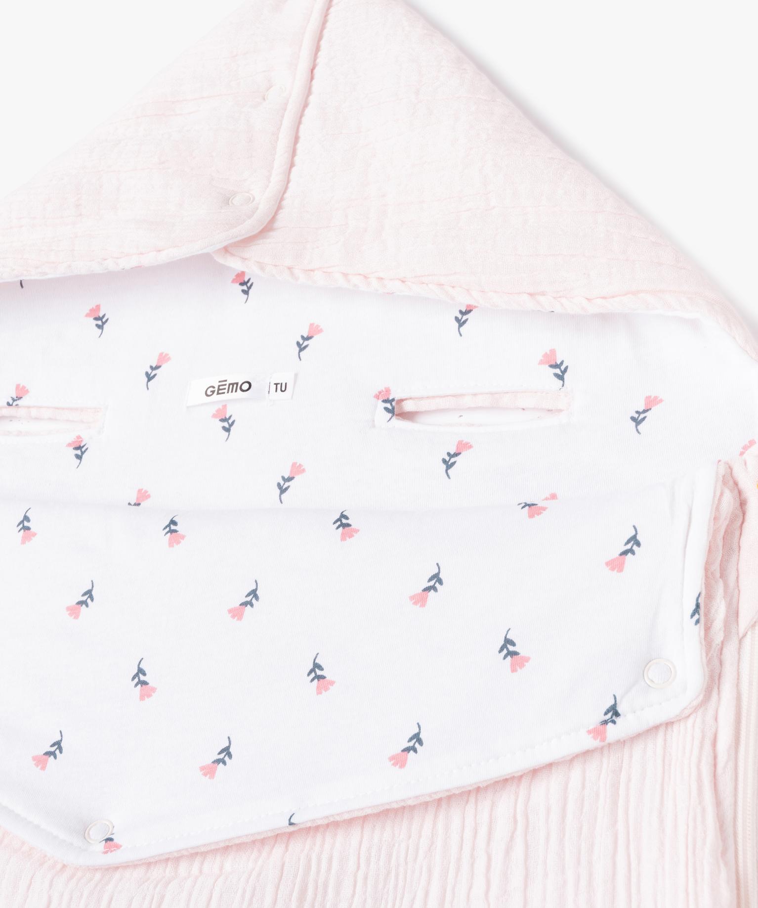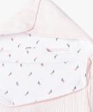 Le nid d’ange fait partie des essentiels pour couvrir bébé lors ses sorties en landau ou en poussette. Ce joli nid d’ange pour bébé est muni d’un système astucieux avec boutons pression sur sa partie haute qui permet de former une capuche pour protéger la tête de bébé. Avec son dessus en gaze de coton et sa doublure jersey, ce sac de couchage pour bébé est idéal pour toutes les sorties estivales. Il se ferme par un large zip sur le côté et dans le bas pour pouvoir découvrir bébé sans le réveiller. Un nid d’ange spécial siège auto muni de fentes adaptées au harnais ! Inscription contrastante sur l’avant.