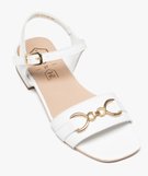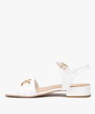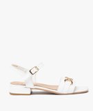 Nu-pieds femme unis à talon plat et bride à chaîne blanc