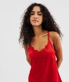Nuisette à fines bretelles en satin et dentelle femme[MISSING] rouge