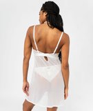 Cette sublime nuisette pour femme vous assure une silhouette ultra sexy ! Confectionnée dans une alliance de dentelle et de tulle, elle affiche un joli jeu de transparence. Cette chemise de nuit sexy possède des bonnets souples doublés et se ferme grâce à des crochets dans le dos. Sous la poitrine une bande satinée légèrement extensible sculpte parfaitement la silhouette. La partie basse en tulle extensible transparent offre un confort exceptionnel tout en ajoutant une touche sensuelle.