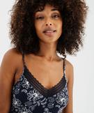Nuisette en viscose avec col V dentelle et fines bretelles femme[MISSING] bleu fonce