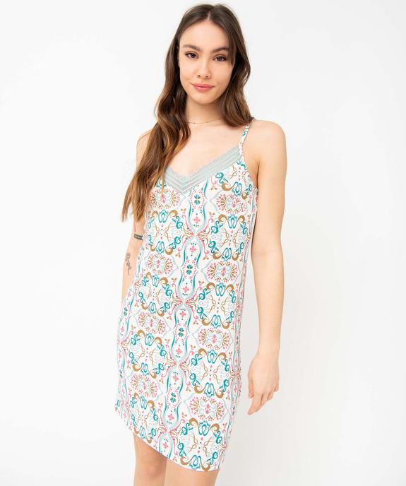 Nuisette en viscose avec col V dentelle et fines bretelles femme bleu