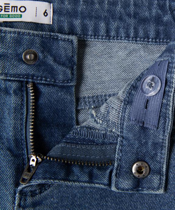 Le jean s’affiche dans une version courte pour accompagner tous les looks de l’été. On aime sa coupe slim indémodable et sa matière extensible qui offre aux enfants un maximum de confort. Ce jean fille possède deux fausses poches sur l’avant et deux poches plaquées au dos. Un jean court à porter avec tous les hauts du vestiaire. Il se ferme par zip et bouton et s’ajuste parfaitement grâce à un élastique dissimulé à la taille. Petites fentes dans le bas.