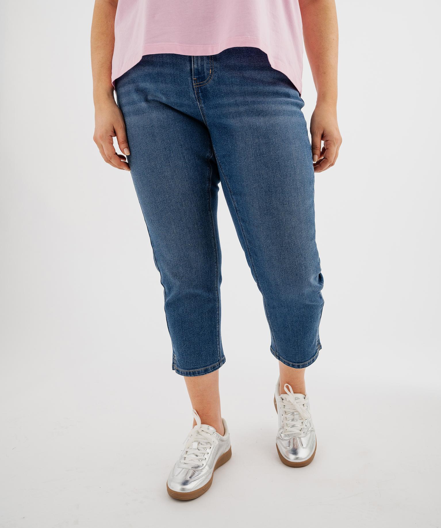 Pantacourt en jean stretch coupe slim taille normale femme grande taille bleu