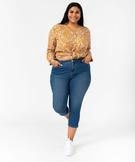 Pantacourt en jean stretch coupe slim taille normale femme grande taille bleu clair