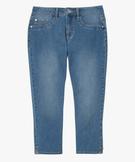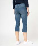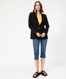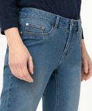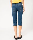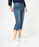 Le jean trouve sa place dans le vestiaire estival dans sa version pantacourt. Un pantacourt femme confectionné dans une matière fine et extensible qui accompagne les mouvements tout en restant confortable. Inspiré du jean traditionnel, il possède une poche ticket, deux fausses poches sur l’avant et deux poches plaquées au dos. Ce jean court se distingue par ses petites fentes en bas des jambes.