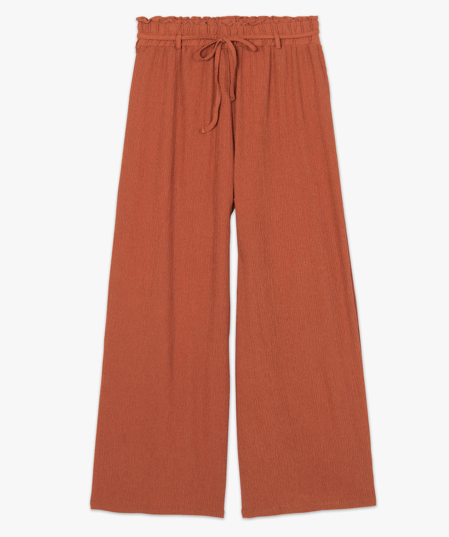 Pantacourt femme large en crêpe orange clair