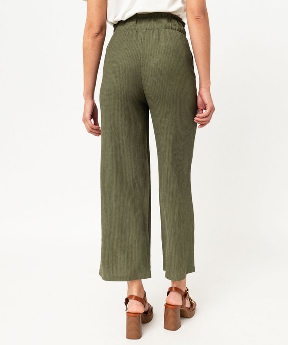 Allure élégante et confort exceptionnel pour ce pantacourt large en maille gaufrée légèrement extensible. Doté d’une large ceinture élastique, il s’enfile facilement et reste confortable tout au long de la journée. Ce pantacourt femme s’adapte à toutes les situations et se porte le jour avec un tee-shirt et des baskets, le soir avec une blouse sans manches et des sandales à talon. Un essentiel du vestiaire estival ! Deux poches latérales.