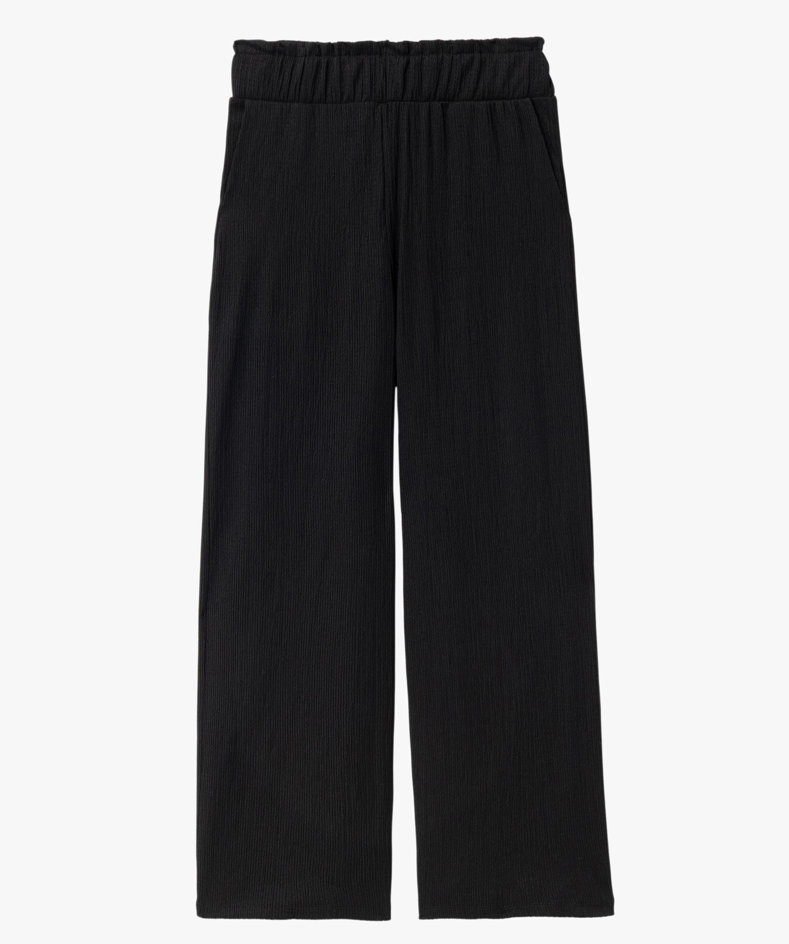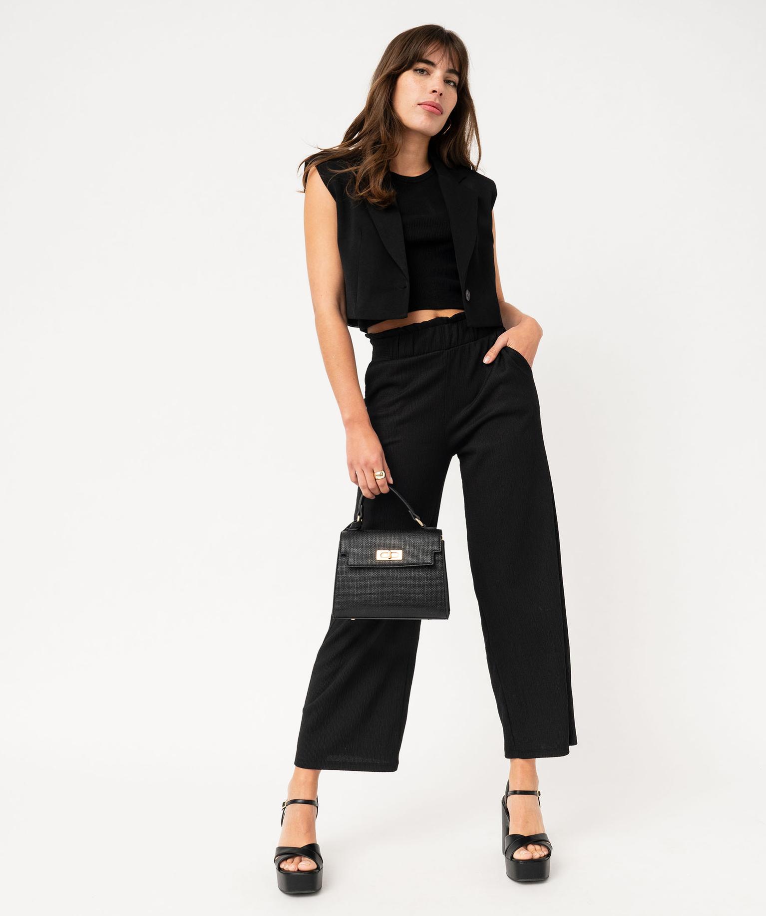 Allure élégante et confort exceptionnel pour ce pantacourt large en maille gaufrée légèrement extensible. Doté d’une large ceinture élastique, il s’enfile facilement et reste confortable tout au long de la journée. Ce pantacourt femme s’adapte à toutes les situations et se porte le jour avec un tee-shirt et des baskets, le soir avec une blouse sans manches et des sandales à talon. Un essentiel du vestiaire estival ! Deux poches latérales.