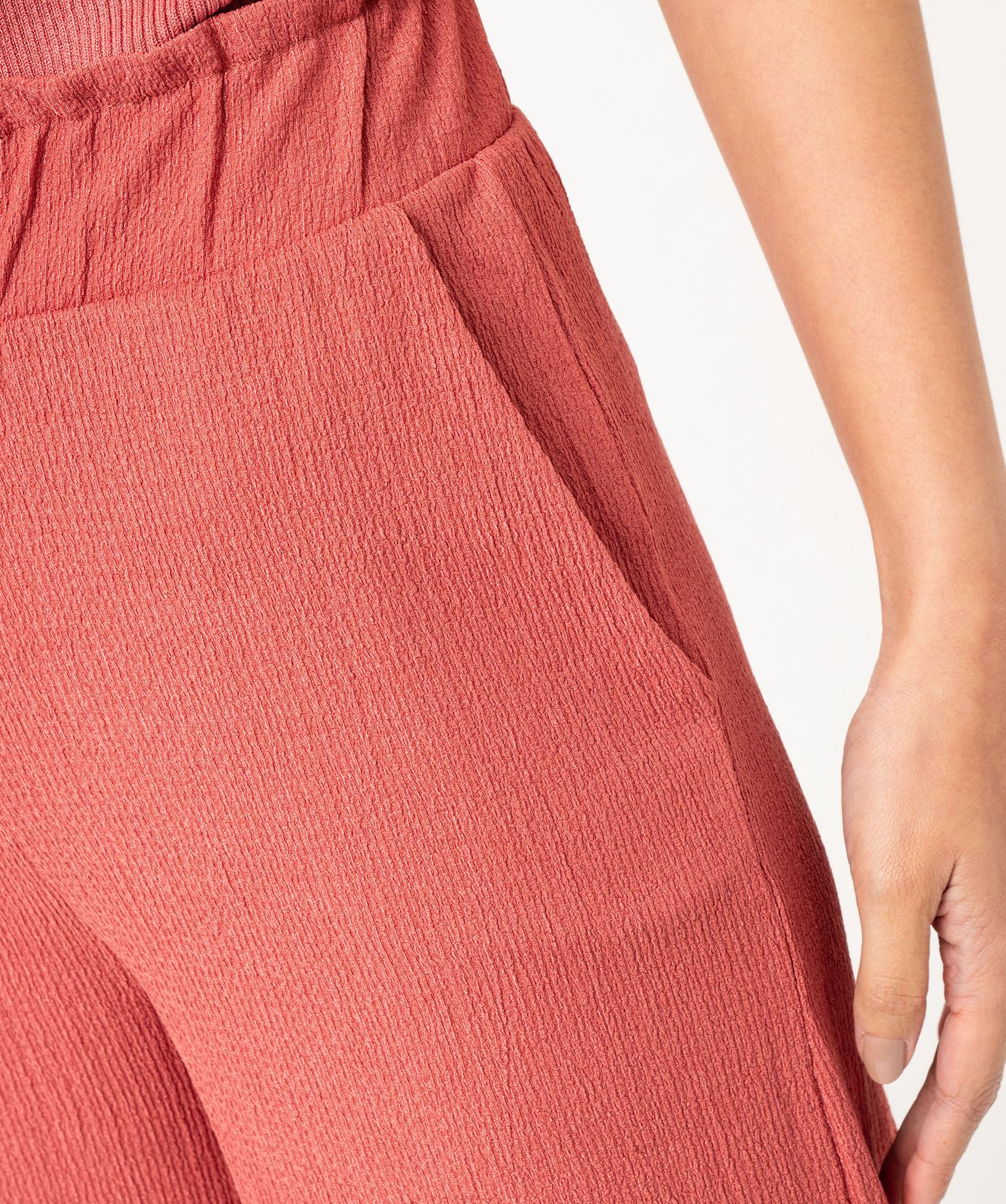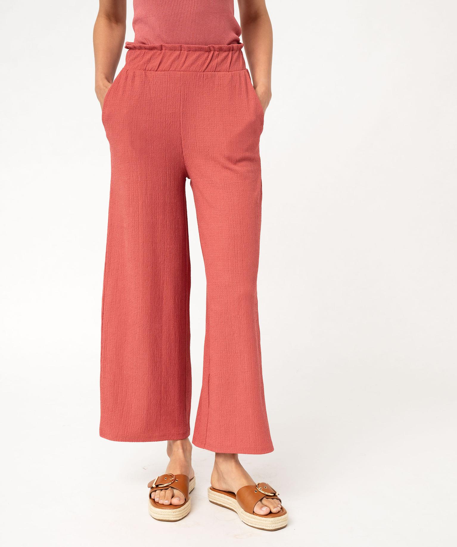 Allure élégante et confort exceptionnel pour ce pantacourt large en maille gaufrée légèrement extensible. Doté d’une large ceinture élastique, il s’enfile facilement et reste confortable tout au long de la journée. Ce pantacourt femme s’adapte à toutes les situations et se porte le jour avec un tee-shirt et des baskets, le soir avec une blouse sans manches et des sandales à talon. Un essentiel du vestiaire estival ! Deux poches latérales.