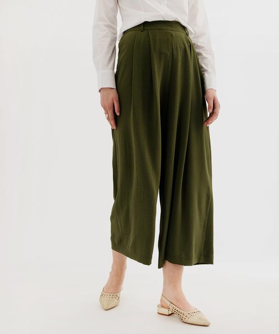 Pantacourt large en toile fluide femme kaki