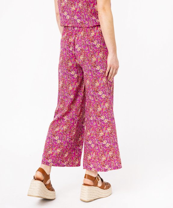 Place aux beaux jours avec ce pantacourt femme ! Un pantacourt ample, léger, parsemé de jolis motifs colorés. Hyper confortable avec sa taille élastique, ce pantacourt trouvera facilement sa place dans votre dressing estival et dans votre valise des vacances. Il se porte aussi bien en ville avec des baskets, un tee-shirt uni et une veste en jean, qu'à la plage avec sandales et crop top ! Sa taille élastiquée est ajustable par cordon coulissant décoré de perles en bois. Le pantalon possède 2 poches dissimulées dans les coutures côté.