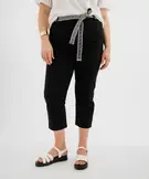 Pantacourt slim taille haute en coton stretch avec ceinture à nouer femme grande taille noir