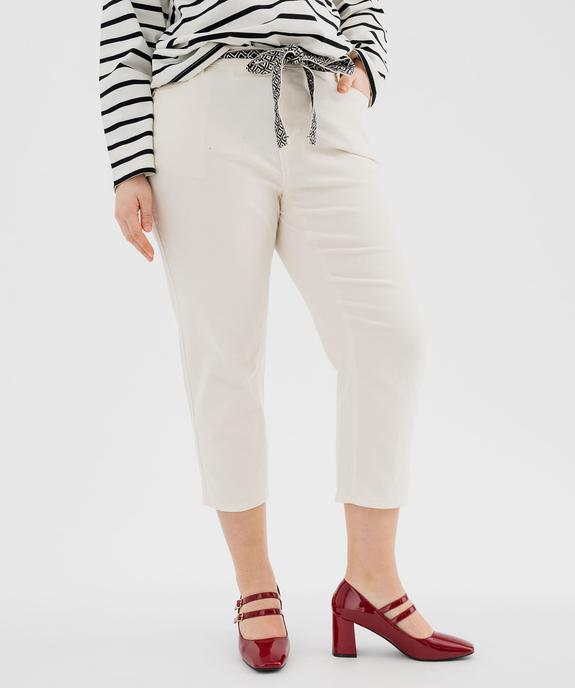 Pantacourt slim taille haute en coton stretch avec ceinture à nouer femme grande taille blanc chine