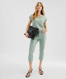 Pantacourt slim taille haute en coton stretch avec ceinture à nouer femme vert clair
