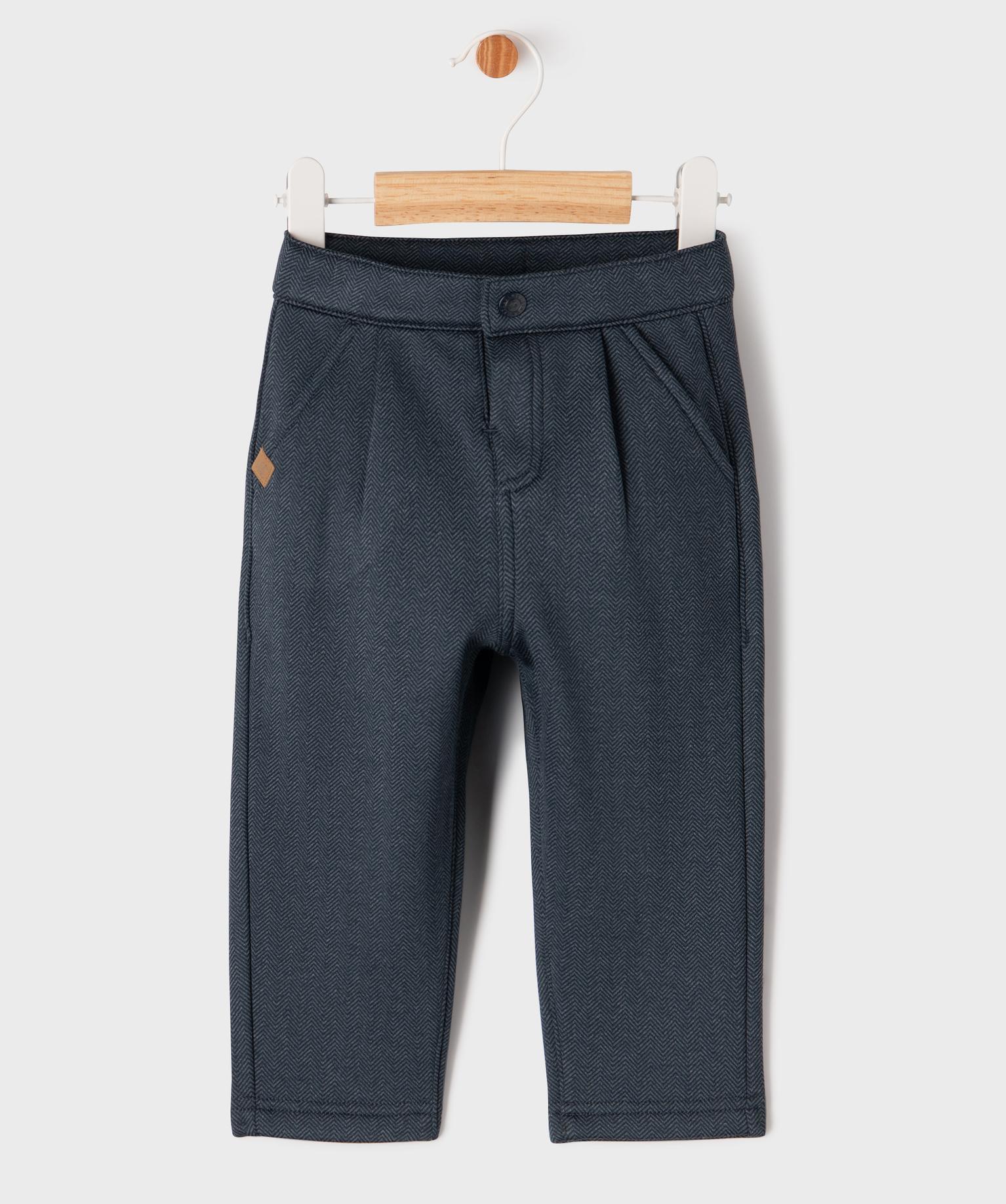 Pantalon à motifs chevrons doublé velours bébé garçon - LuluCastagnette bleu fonce