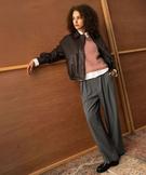 Pantalon à pinces coupe large femme gris
