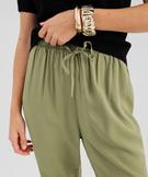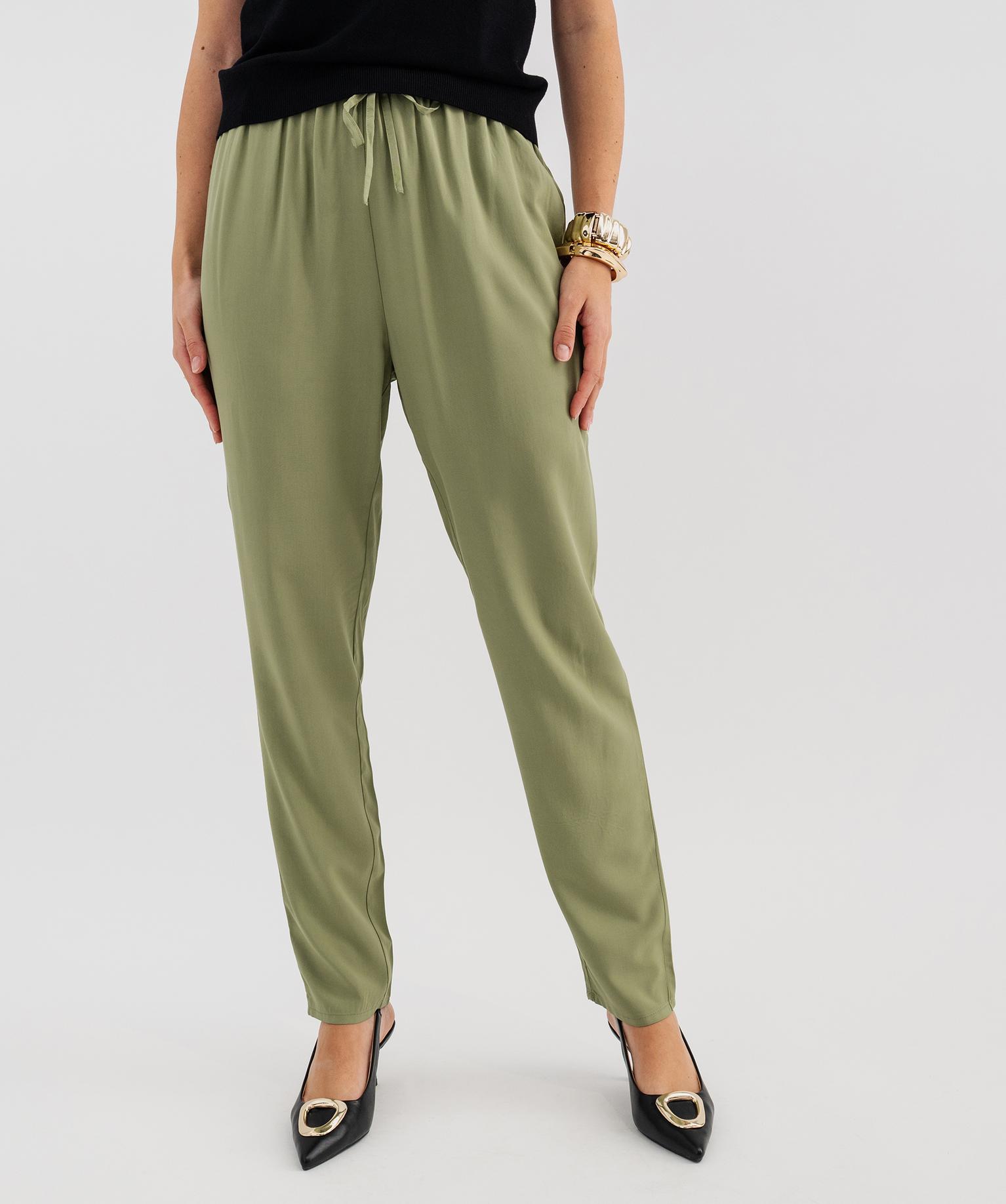 Pantalon à taille élastiquée en viscose fluide imprimée femme vert