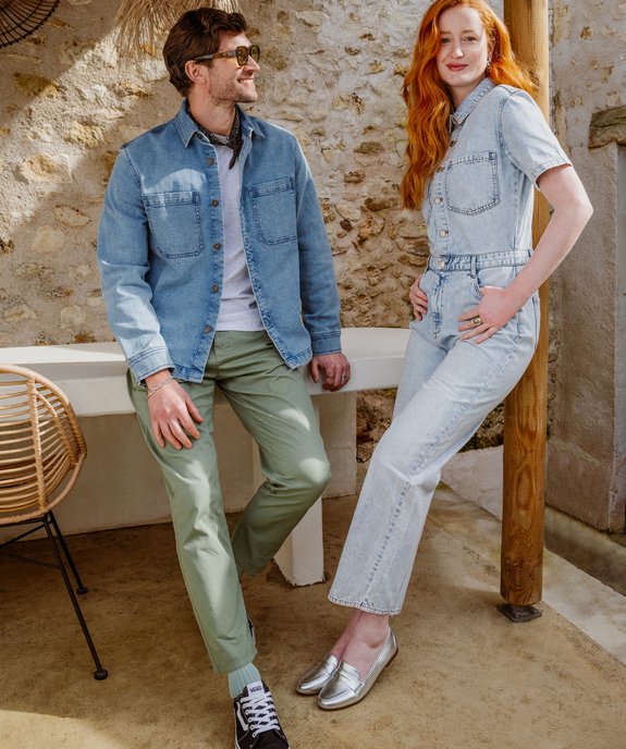 Cet été, adoptez une allure décontractée tout en restant élégant grâce à ce pantalon à la coupe ample. Un pantalon décliné dans un coloris uni facile à porter et à marier avec les chemises et tee-shirt du vestiaire. Confectionné en coton et lin, il offre un grand confort et s’ajuste à chaque morphologie grâce à un cordon coulissant. Il possède deux poches italiennes et deux poches passepoilées fermées par un bouton au dos. Un pantalon relax à porter sans modération tout l’été avec une paire de baskets !