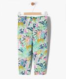 Vous allez adorer le style décontracté de ce pantalon bébé fille. Coupe ample resserrée aux chevilles par des élastiques, ceinture froncée facile à enfiler et motifs exotiques aux couleurs pétillantes, tout est réuni pour offrir aux petites princesses un look craquant ! Ce pantalon imprimé est confectionné en viscose offrant une température idéale. Il se porte avec un top à bretelles ou un tee-shirt pour un look 100% estival.