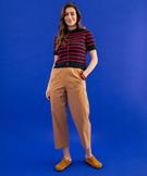Avec sa coupe barrel ultra tendance, ce pantalon femme apporte une touche mode tout en restant facile à porter au quotidien. La taille élastiquée assure un confort immédiat et un enfilage sans contrainte. À l’avant, les poches se prolongent par une couture le long de la jambe. Un détail bien pensé qui structure la silhouette et apporte juste ce qu’il faut d’originalité. On craque pour la toile de coton épaisse et ultra douce, qui donne une belle tenue au pantalon. Elle contient une pointe de stretch pour plus de confort et de liberté de mouvement. Un pantalon stylé et confortable, parfait pour composer des looks modernes et décontractés.