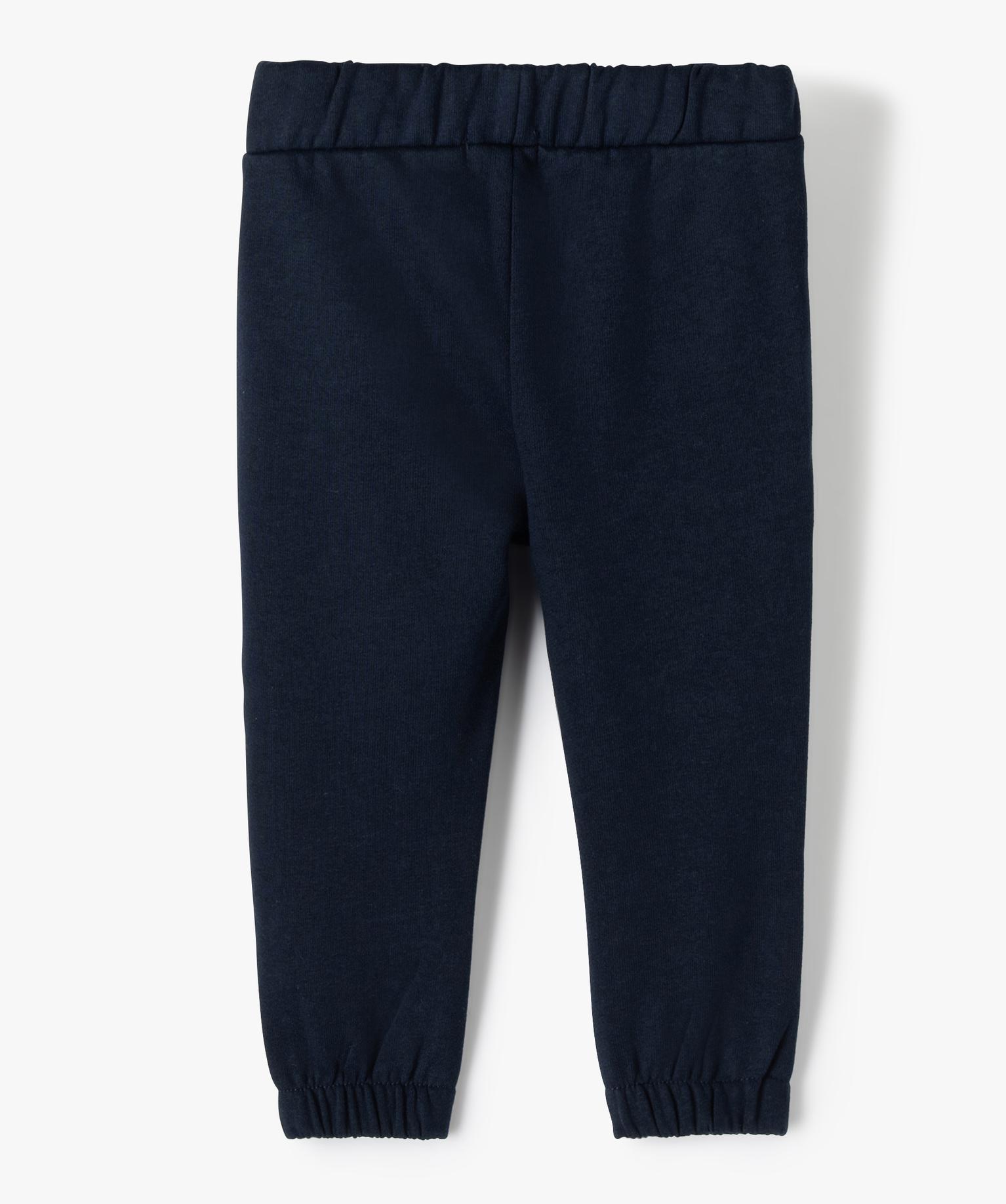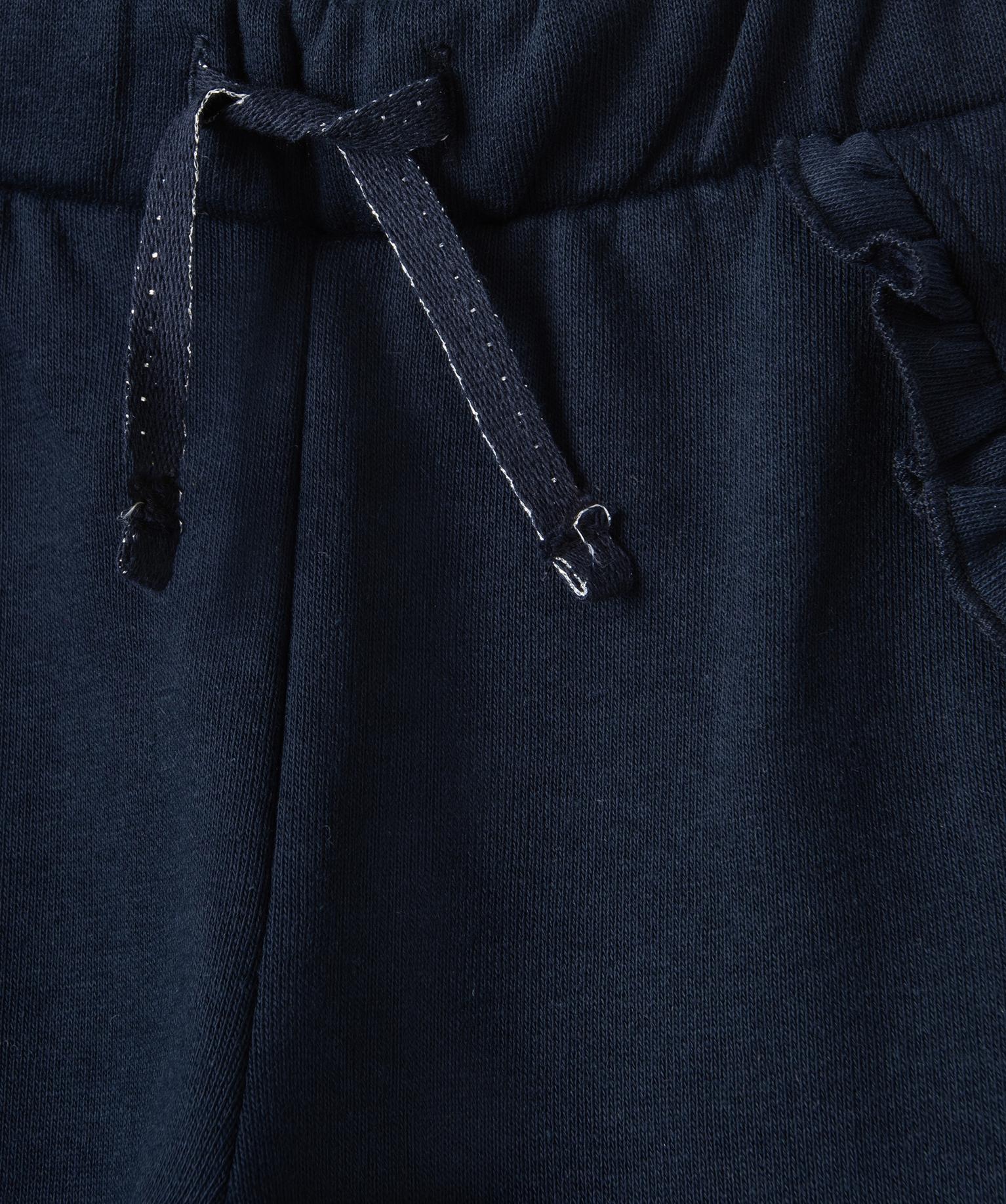 Quoi de mieux pour assurer le confort des bébés qu’un pantalon en maille avec intérieur molletonné ? Si en plus ce pantalon est agrémenté de détails girly, les petites filles tomberont sous son charme à coup sûr ! Ce pantalon bébé fille possède une taille élastiquée avec petit cordon pailleté à nouer, des élastiques aux chevilles et des empiècements volantés sur les hanches. Un pantalon à motifs girly à associer à un tee-shirt ou un joli sweat.