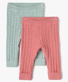 Pantalon bébé fille en maille torsadée (lot de 2) rose