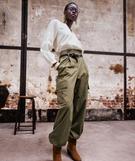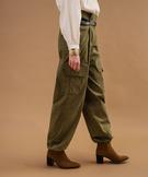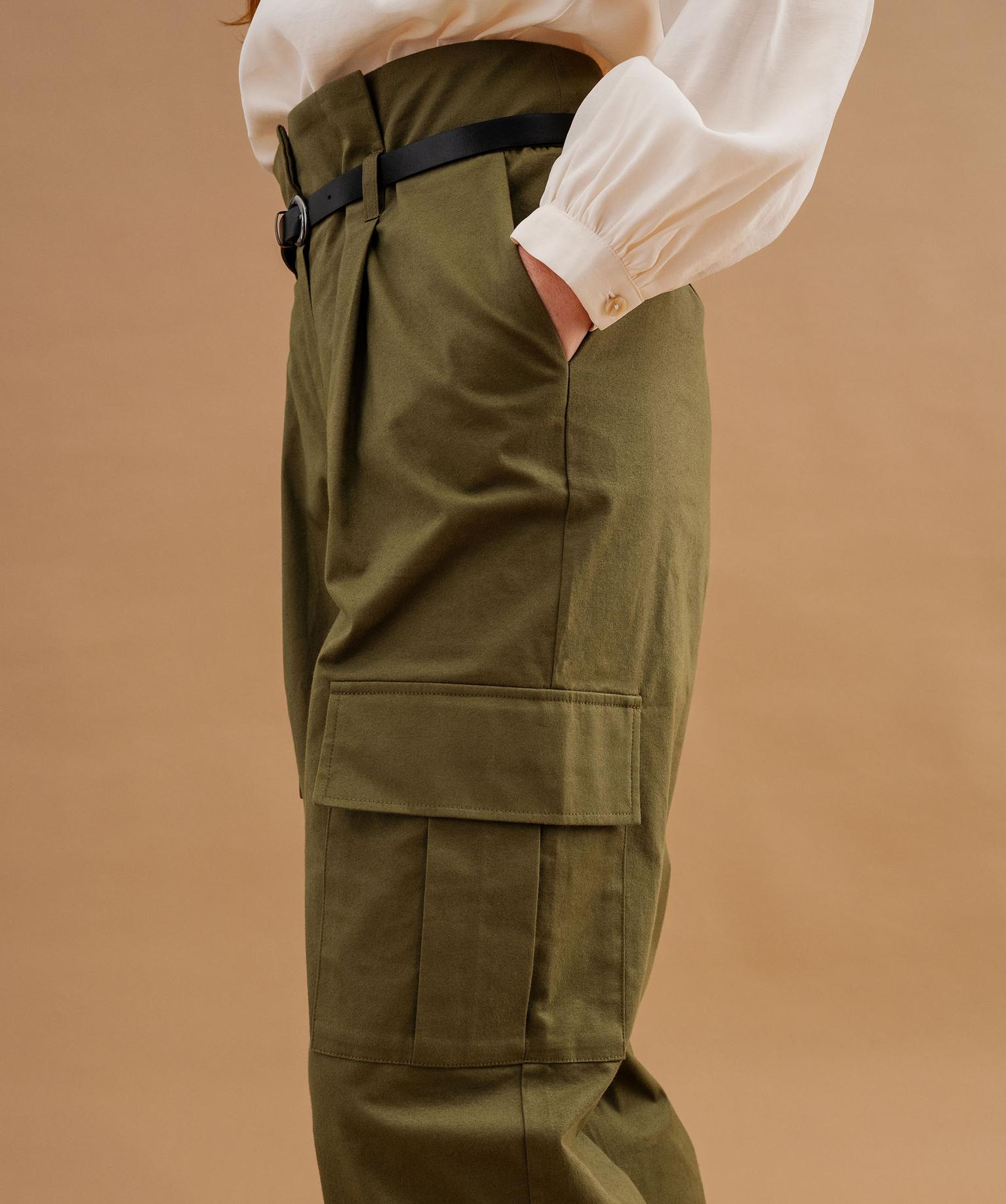 Pantalon cargo à taille haute avec ceinture femme vert