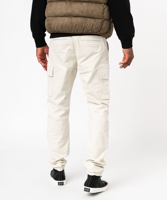 Ce pantalon cargo deviendra l’une des pièces maîtresses du dressing. Grâce à sa coupe Straight avec poches à rabat sur les côtés, inspirée du look militaire, ce pantalon pour homme s’affiche comme le pantalon décontracté par excellence. Son coloris est obtenu grâce à un procédé de teinture particulier qui diffère d’un modèle à l’autre pour un pantalon unique. Il est confectionné dans une matière légèrement extensible pour offrir un maximum de confort. Pour encore plus de style, ce pantalon battle possède des bas de jambes resserrés par un élastique. 2 poches italiennes. 2 poches à rabat pressionnées. 2 poches raglan au dos. Fermeture par zip et bouton