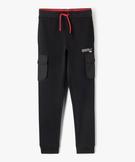 On adore la coupe cargo de ce pantalon, un essentiel du dressing des jeunes garçons pour son look urbain et sa grande praticité. Confectionné dans un molleton douillet, il est très agréable à porter pour toutes les activités de la journée. Facile à enfiler, sa taille est élastiquée et s'ajuste parfaitement à la morphologie grâce à un cordon de serrage. Ce n'est pas tout, ce pantalon garçon est ultra fonctionnel avec ses deux grandes poches à rabat sur les cuisses, idéales pour garder les mains libres, et ses trois autres poches bien pensées. Une petite inscription vient signer le look sur le côté. Les finitions resserrées aux chevilles assurent un bon maintien et structurent la silhouette pour une allure soignée.