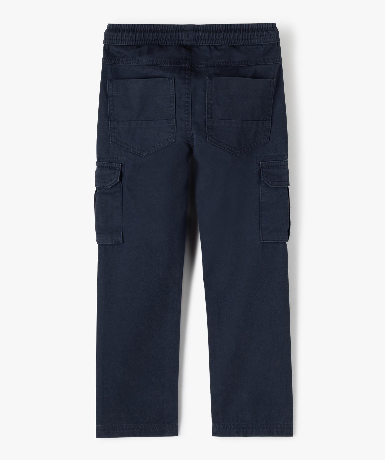 On aime ce pantalon garçon pour son look décontracté et sa grande praticité ! Sa coupe cargo est pile dans la tendance et plaira à tous les jeunes garçons qui aiment bouger. Entièrement conçu en toile 100% coton, il est agréable à porter au quotidien. Son plus grand atout ? Ses six poches, dont deux grandes sur les côtés, parfaites pour y glisser tous les petits secrets et les trouvailles de la journée. Côté pratique, sa taille élastiquée avec cordon de serrage permet de l'enfiler en un clin d'œil et assure un maintien parfait tout au long de la journée, sans jamais serrer.