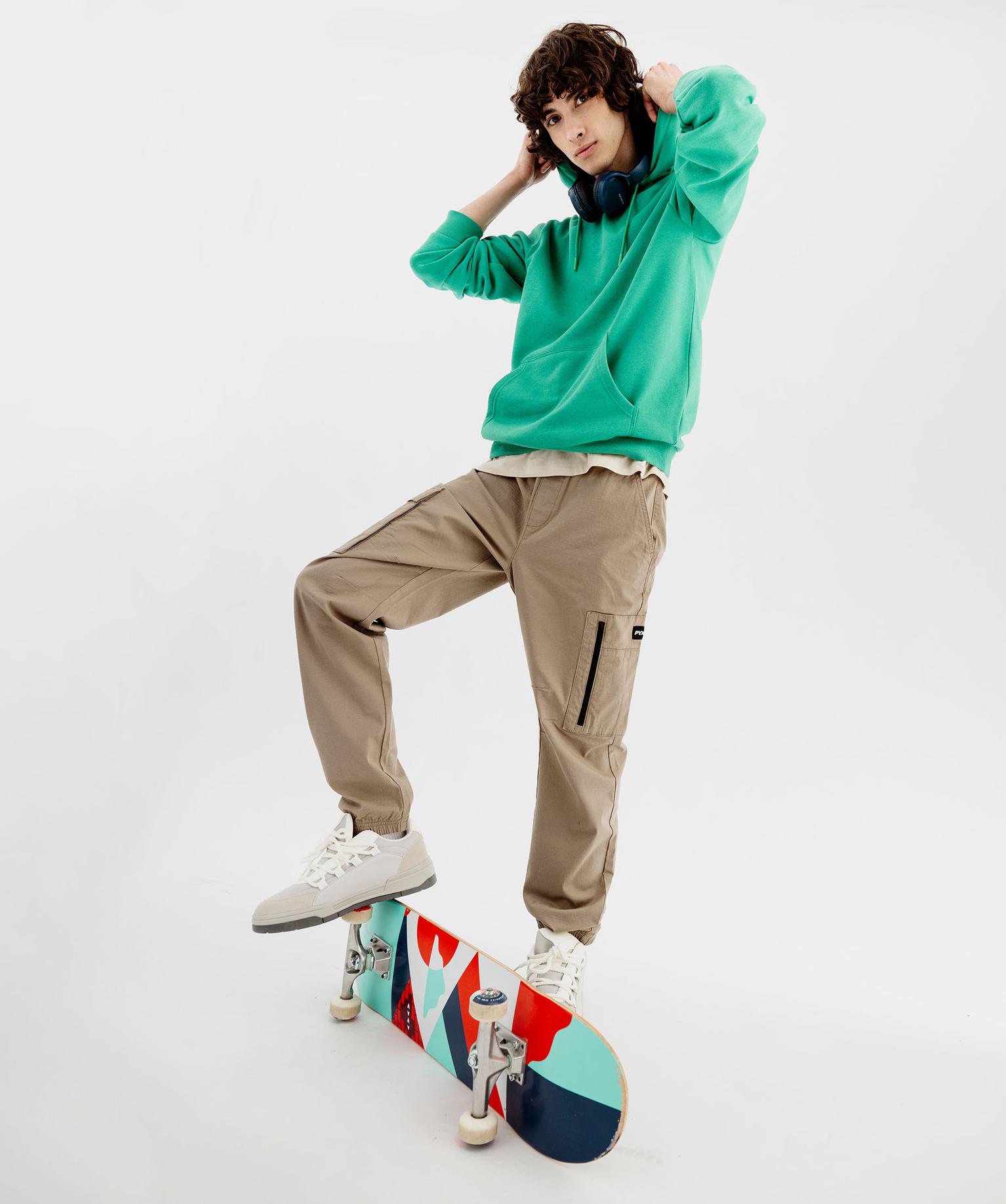 Le pantalon cargo est un atout confort dans le vestiaire des hommes. Ce pantalon ample est confectionné dans une toile de coton extensible texturée affichant des motifs carreaux. Il possède une large poche à rabat sur une jambe et une poche zippée sur l’autre. Aux genoux, des pinces donnent encore plus d’ampleur au modèle. Ce pantalon homme possède une ceinture élastique ajustable par cordon coulissant et des bas de jambes resserrés par un élastique. Un pantalon multipoches à porter avec un sweat à capuche et des chaussures de randonnée. Deux poches italiennes, deux poches raglan au dos et deux poches sur les cuisses.
