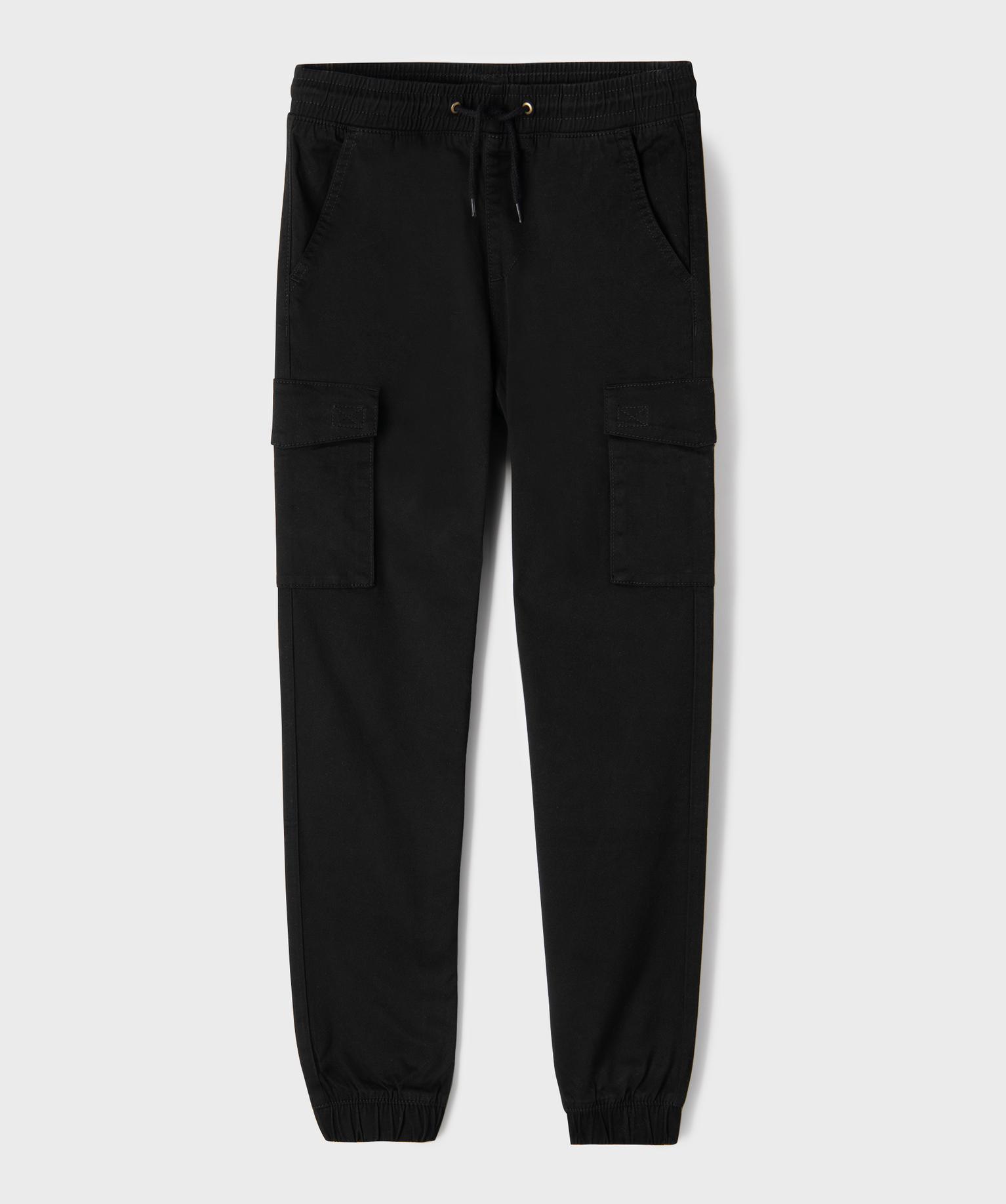 Pantalon cargo jogger en coton stretch à taille élastiquée garçon noir
