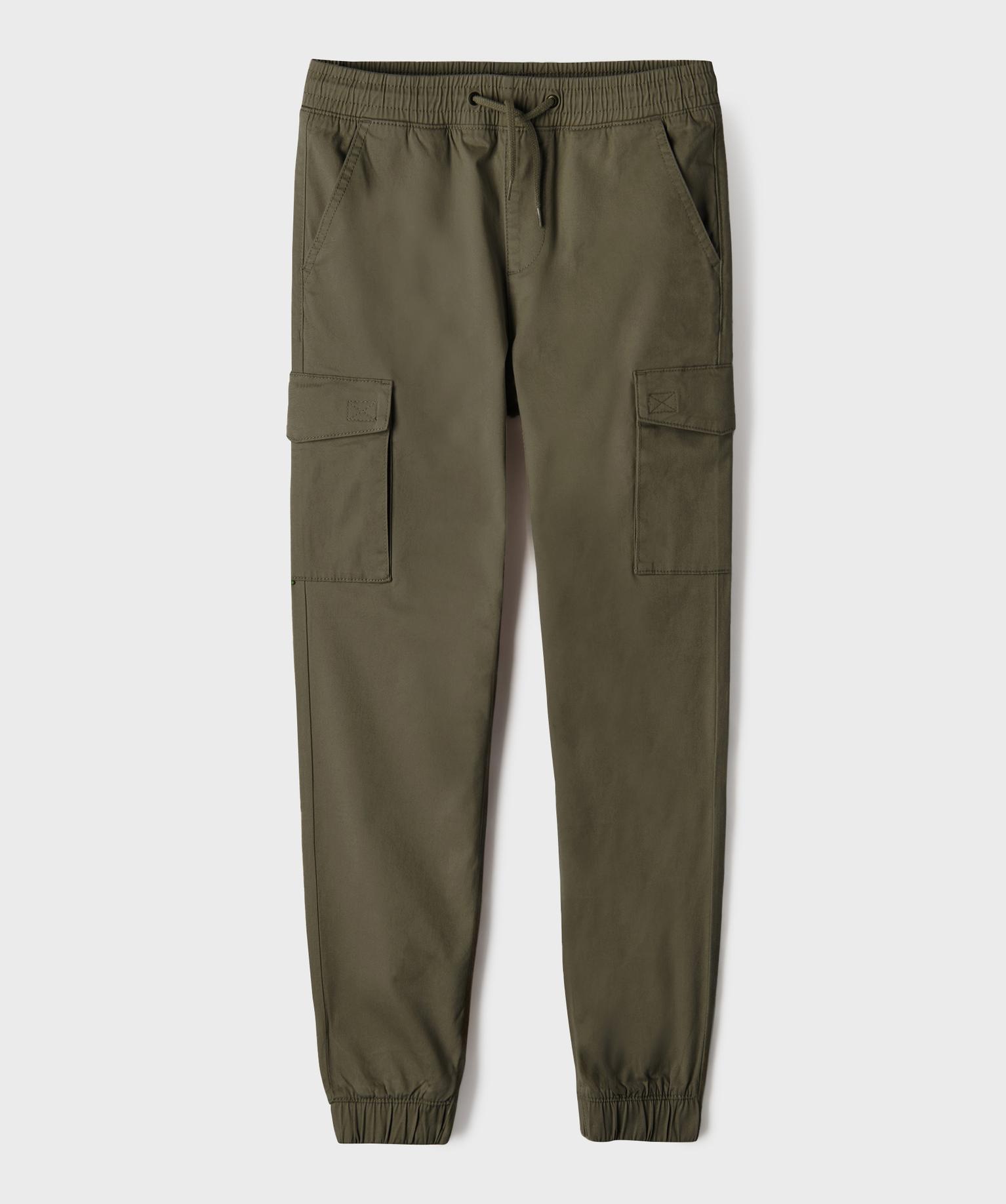 Pantalon cargo jogger en coton stretch à taille élastiquée garçon kaki