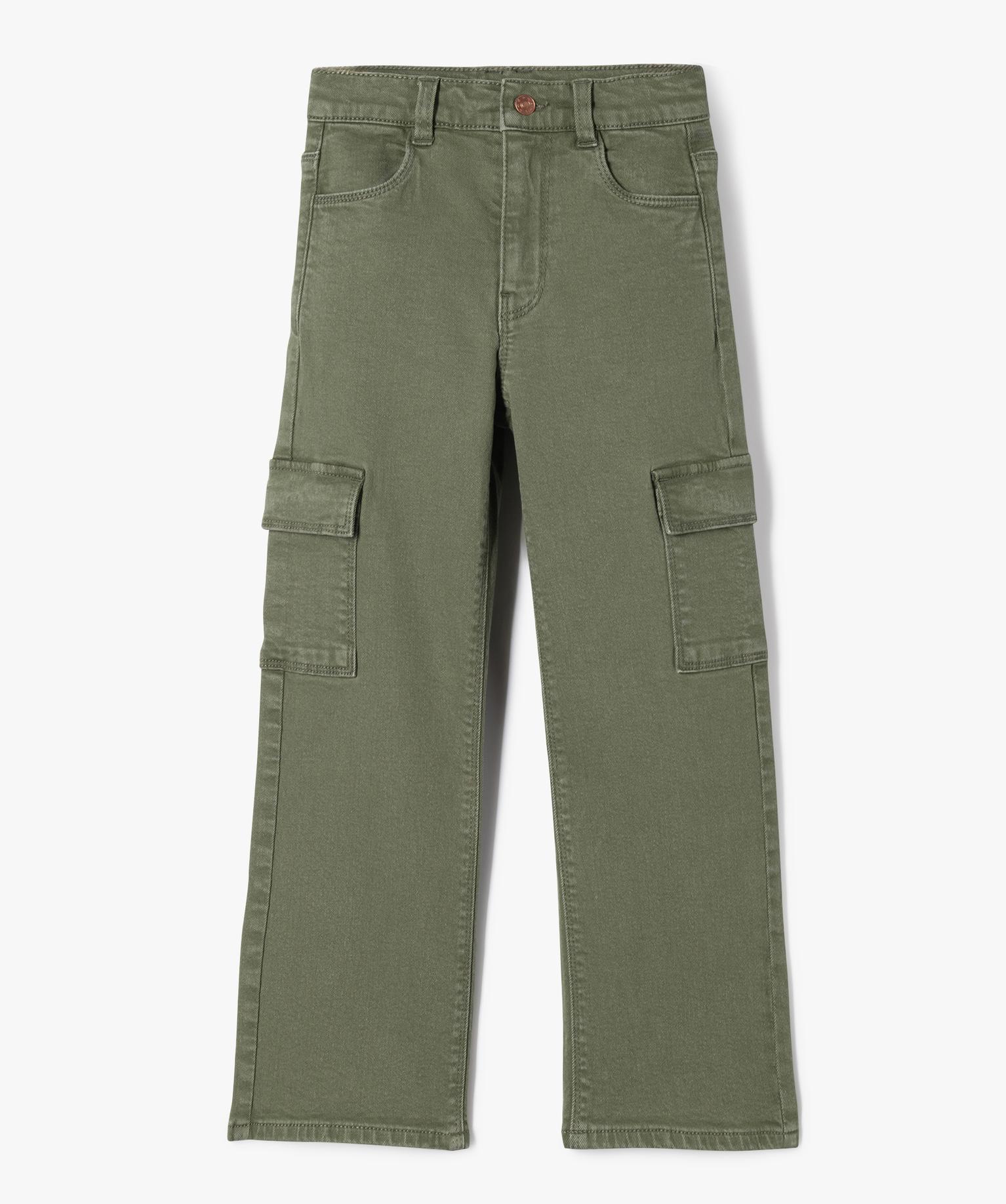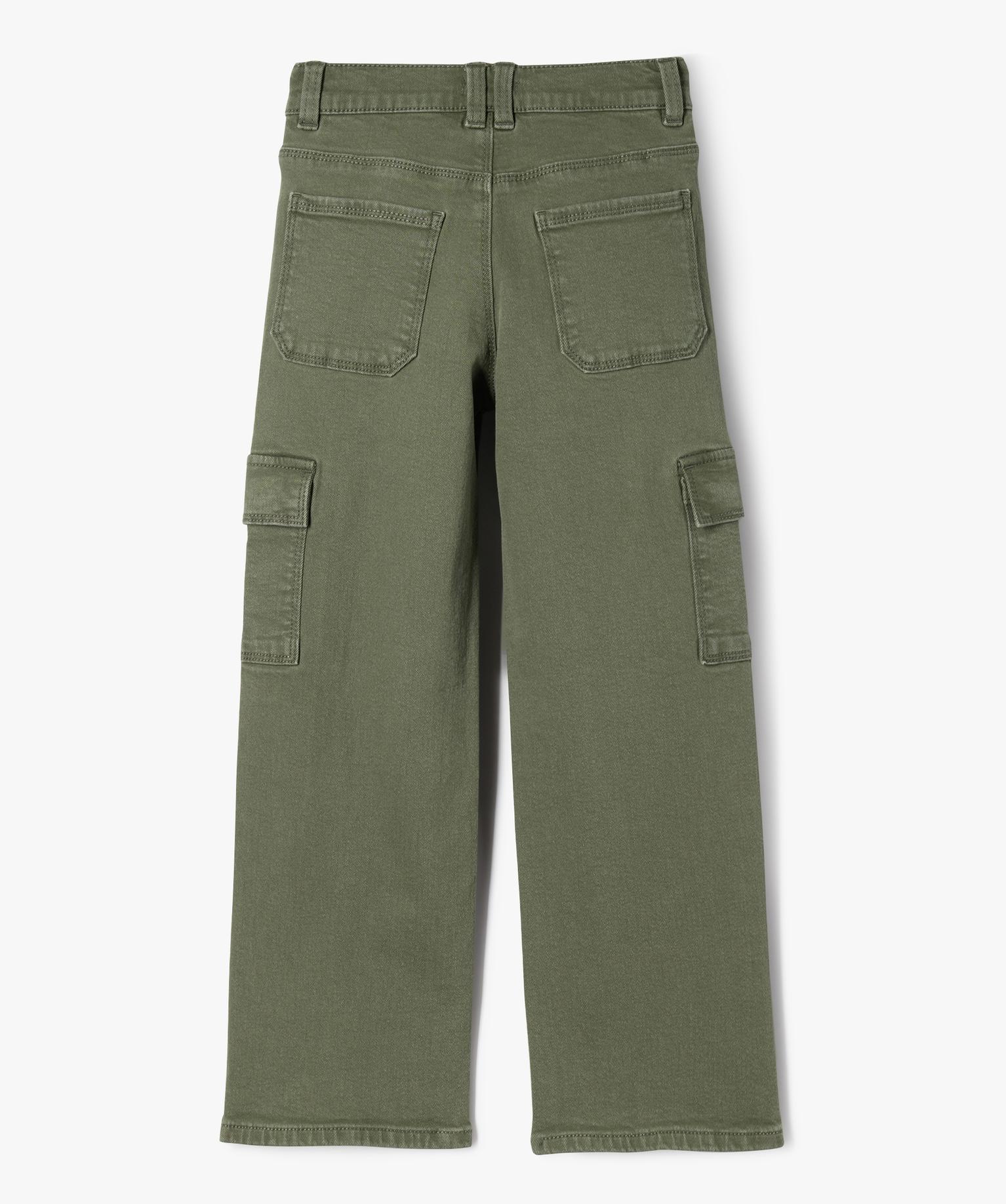Pantalon fille très tendance. Le pantalon cargo se pare d'une coupe straight confortable de la taille à la cheville, avec deux grandes poches plaquées à rabat sur les cuisses. Pratique, le pantalon est confectionné dans un coton stretch extensible et équipé d'un système de réglage à la taille pour s'ajuster à la morphologie de votre enfant. Ce pantalon très cool, décliné en plusieurs coloris, se combine idéalement avec un crop top, un tee-tshirt imprimé ou un sweat à capuche. 2 poches devant + 2 poches latérales + 2 poches plaquées au dos. Fermeture zip + bouton-pression. Taille haute.