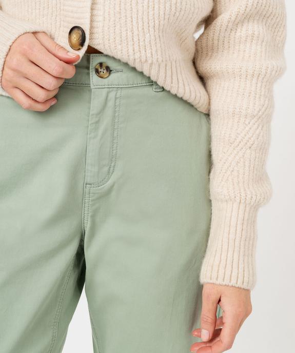 Ce pantalon chino trouvera sa place parmi les essentiels de la garde-robe féminine. Il allie style et confort avec élégance. Confectionné dans une toile de coton légère et extensible, ce pantalon arbore une coupe regular, ce qui en fait un choix idéal pour un look à la fois chic et décontracté. Ce pantalon femme possède une ceinture à passants, des poches italiennes et de fausses poches raglan sur l'arrière. Il se ferme à l’aide d’un zip et d’un bouton. Ce pantalon s’adapte à toutes les situations et se porte en version working girl avec une chemise et des derbies, en version cool avec un sweat et des baskets, ou encore avec un blazer et des boots à talon pour une allure chic indémodable.