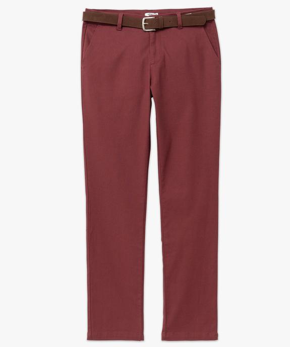 Pantalon chino coupe slim en coton stretch piqué avec ceinture homme bordeaux