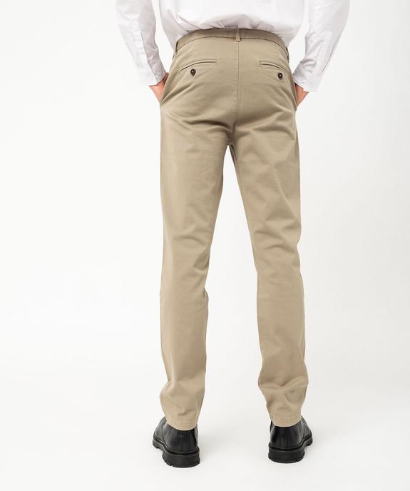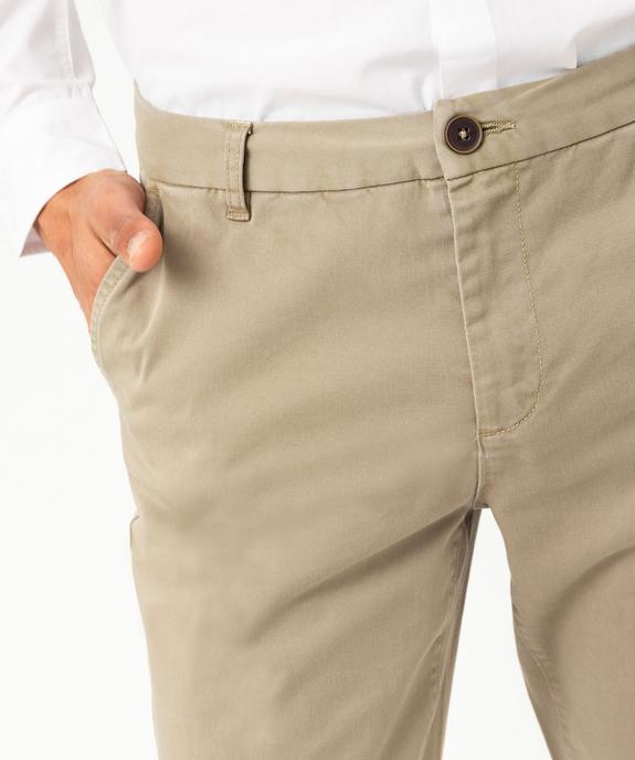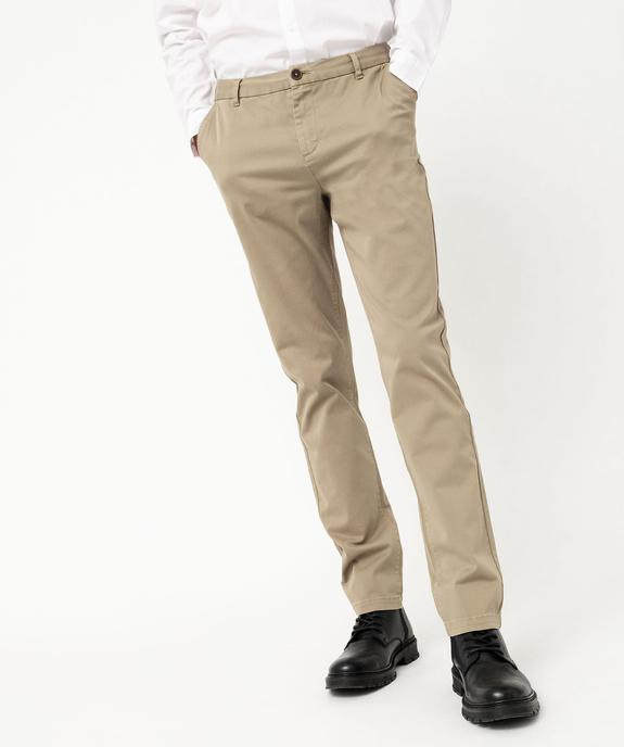 Retrouvez l’indispensable pantalon chino dans sa version slim pour souligner la silhouette avec élégance. Un pantalon homme confectionné en coton extensible qui offre plus de confort, décliné dans un coloris uni obtenu par un procédé de teinture spécifique assurant un résultat unique. Il possède deux poches italiennes et deux poches passepoilées fermées par un bouton au dos. Un pantalon élégant à porter au quotidien avec une chemise et des derbies.
