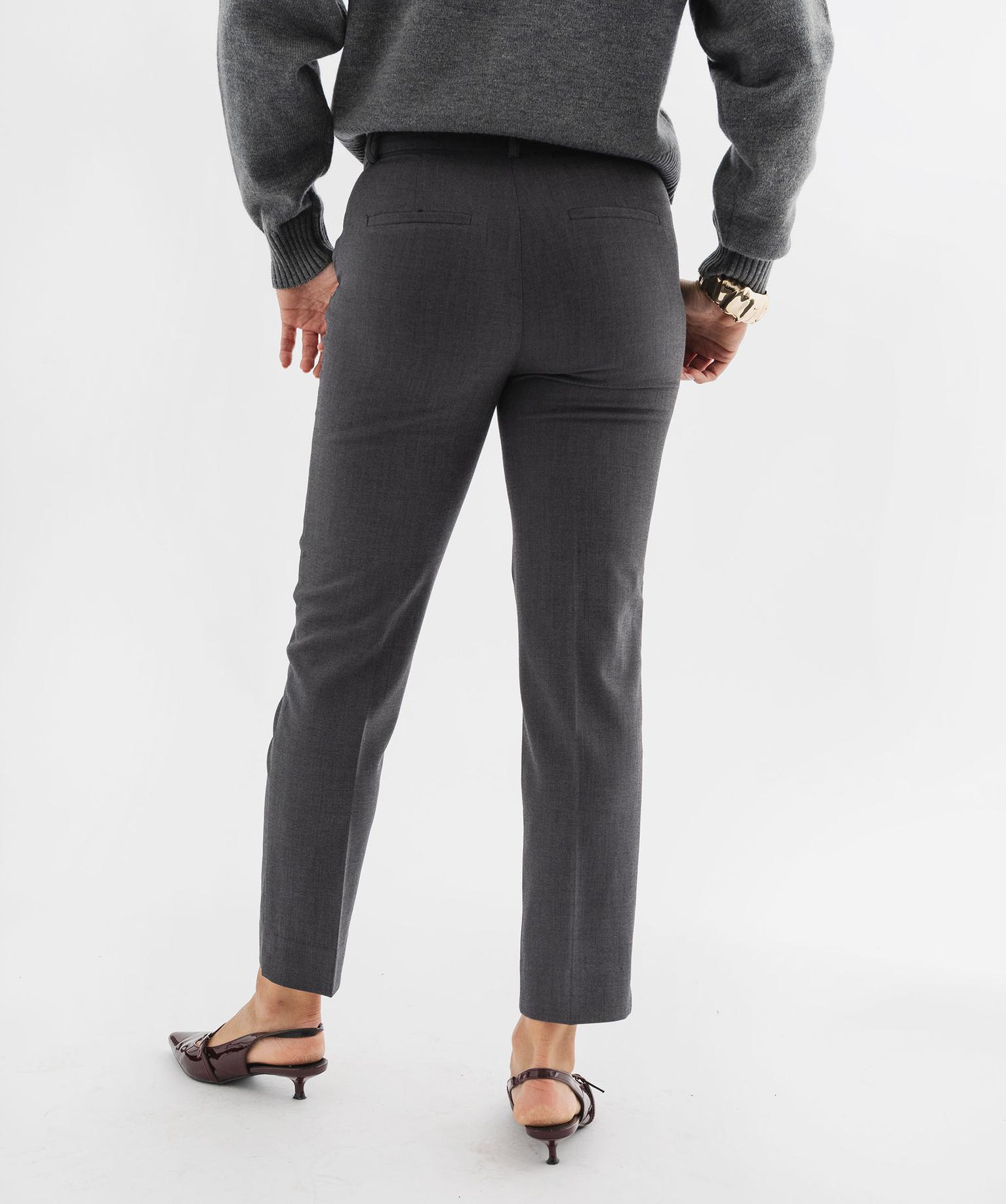 Idéal pour les looks chics et les tenues professionnelles, le pantalon de costume femme. Sa coupe slim, avec plis marqués sur l’avant et au dos, sublime la silhouette sans marquer les formes. Il est doté d’une ceinture plate avec passants pour ceinture et se ferme à l’aide d’un zip, d’un crochet et d’un bouton. Pratique, il possède deux poches italiennes et deux fausses poches raglan au dos. Un pantalon de costume à porter avec le blazer assorti et une chemise ou un tee-shirt. Petites fentes en bas des jambes.